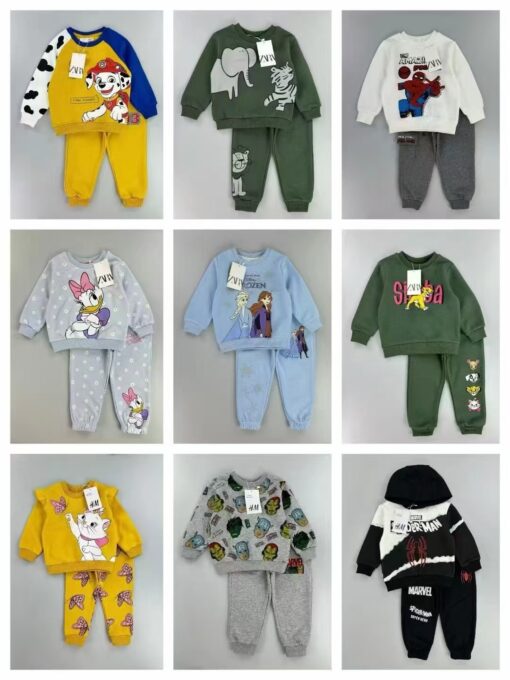 Cotton cartoon pattern children’s home clothing, two-piece set.Wholesale Kids Matching Family Loungewear Sets